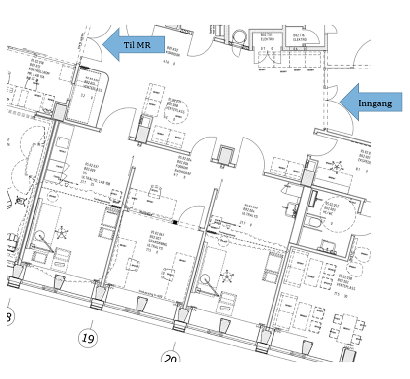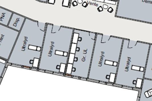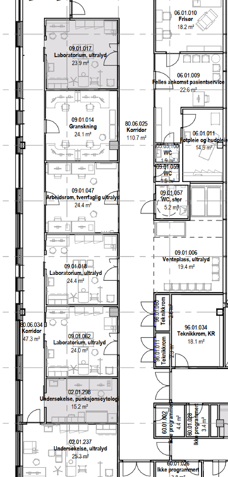 Vedlagt tre eksempler på arealer knyttet til virksomhet på ultralyd, Nordlandssykehuset i Bodø, Nytt klinikkbygg Radiumhospitalet og Nye Rikshospitalet.