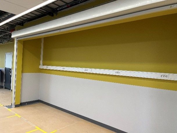 Nisje i korridor, nytt sykehus i Malmø. Nisjen er utstyrt med branngardin