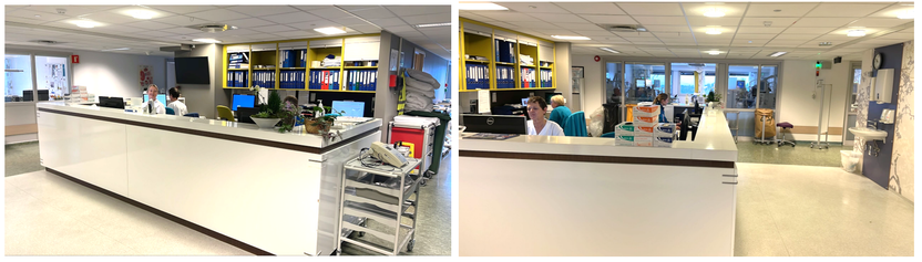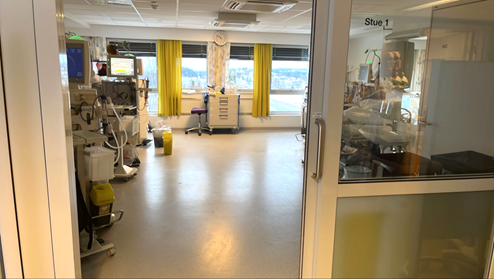 • Det er ikke direkte dagslys i arbeidsbasen, men glassvegger i behandlingssalen samt pauserommet slipper indirekte dagslys inn fra begge sider