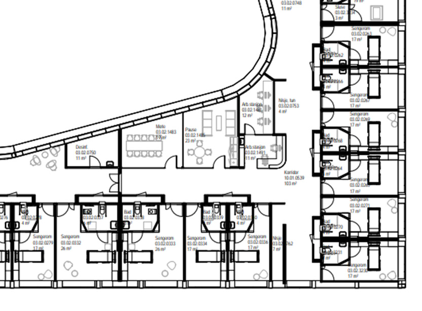 Sengerom, undersøkelsesrom og andre rom er planlagt slik at de enkelt kan endre funksjon, og det er også beskrevet hvor lang tid slike endringer er anslått å ta.