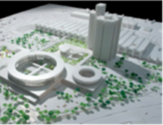 Herlev hospital er et eksempel på plassering av sengeområder oppå en base, men i et sirkulært bygg. Det nye akuttbygget og Kvinne-barn-senteret ved Herlev hospital i København utgjør en utvidelse på ca. 60 000m2.