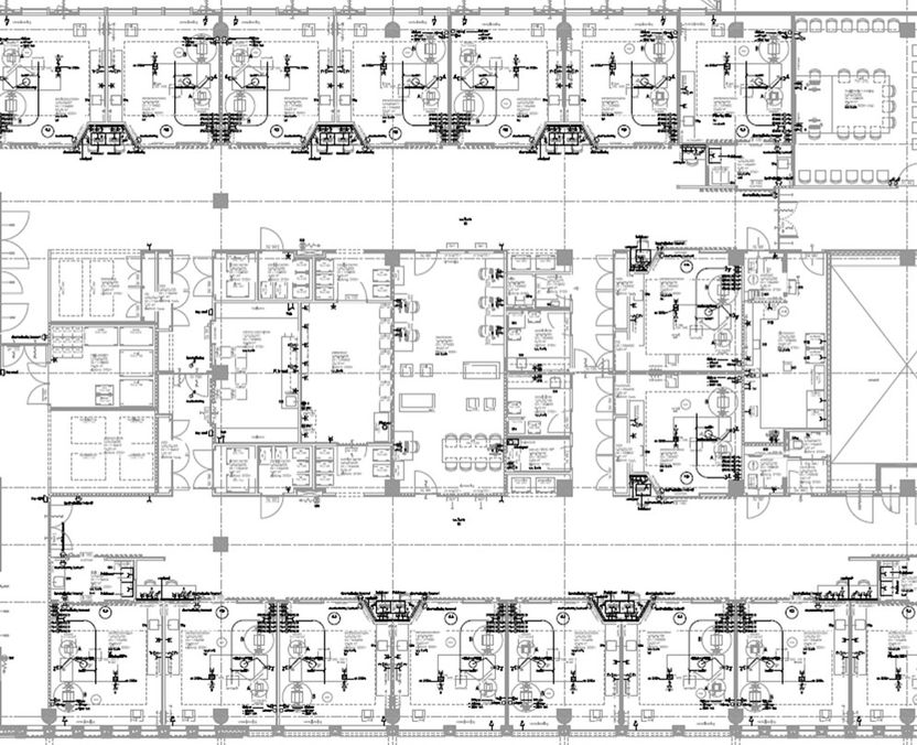 Det er 38 intensivplasser og 16 overvåkingsplasser ved MC Erasmus. Arbeidsplasser på utsiden av intensivrommene med overvåking av to intensivrom. Dobbelt korridor med støtterom i midtkjernen.