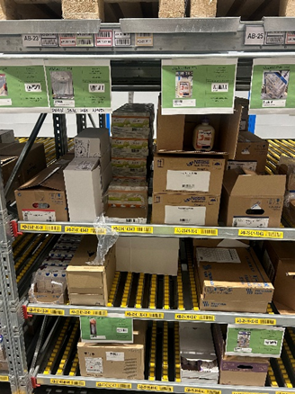 En mulig løsning for plukkplasser i pallelager er bruk av flowracks, med innlagring fra baksiden og plukk fra forsiden.