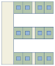 Sengeområdene er plassert i et eget sengebygg over 4 etasjer (plan 2 - 5) og med poliklinikk på plan 1. Et sengeområder er bygd opp av 4 sengetun på rad med de fleste støtterom i den tverrgående forbindelsen per etasje.