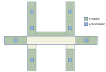 Nye Drammen sykehus har enkelt-korridor løsning med støtterom fordelt i «krysset». Krysset er inspirert fra Ringerike sykehus. Ringerike fikk bra anmeldelser fordi krysset er bygd opp av fløyene som er forskjøvet i forhold til hverandre, og som skaper flere støtterom i krysset. Heiser og sjakter o.l. er ikke rett over hverandre, og det er lagt inn støttefunksjoner der.