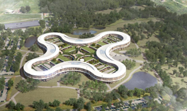 Sykehuset med denne slangeformen bygges i Hillerød og har sengeområder med en organisk form bygget oppå en base av behandlingsarealer. Det er 570 senger og 100% ensengsrom. Sengerom bygges etter et standardkonsept med flytende grenser mellom spesialitetene ut fra prinsippet om «Bruksrett framfor eierskap». Sengerom på plan 2 og 3 orienterer seg alle enten mot den store takhagen eller mot landskapet rundt om sykehuset.