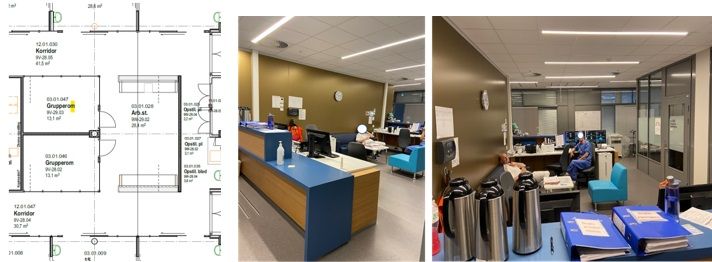 I arbeidsstasjonen er det en slaveskjerm for overvåkingsparametere. Sykepleierne kan dermed i prinsippet overvåke pasientene fra arbeidsstasjonen, spesielt kveld eller natt, når det er mindre besøkende og skyvedøren til pasientrommet er åpen.