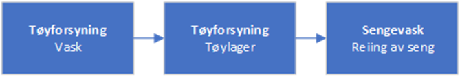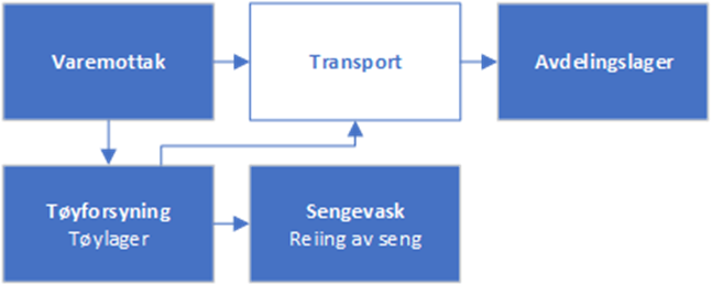 Beskrivelse av vareflyt for rent pasienttøy (se også figuren nedenfor):