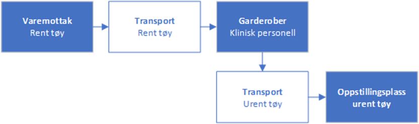 Beskrivelse av vareflyt for personaltøy for klinisk personell (se også figuren nedenfor):