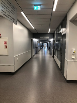 Området er utformet med en dobbeltkorridor hvor støtterom, medisinrom og desinfeksjonsrom er plassert i midtsonen. Arbeidsstasjonen er sentralt plassert både i A2 og A3 og sengerommene er plassert langs yttervegg. Korridoren er 100 m lang og bredden på bygget er ca. 25m. Det er et adgangskontrollert område, uten gjennomgangstrafikk og separate innganger tilganger for pårørende og pasient/personell.
