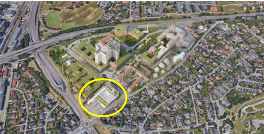 Nye Aker sykehus skal være et akuttsykehus med lokal-, område- og regionsfunksjoner for psykisk helsevern og tverrfaglig spesialisert behandling av ruslidelser. Nye Aker skal også ha lokalsykehusfunksjoner innen somatikk. I figuren nedenfor vises det et oversiktsbilde over Nye Aker Sykehus hvor vare- og distribusjonssentral er markert med en gul ring.