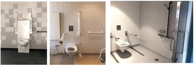 Arealet i Bergensbadet kan økes for å ivareta krav til rullestoltilgjengelighet på begge sider av toalettet (TEK17), forutsatt at konseptet bevares. Arealet øker da til 7m2. Arealøkningen betinger montering av flere støttepunkter.