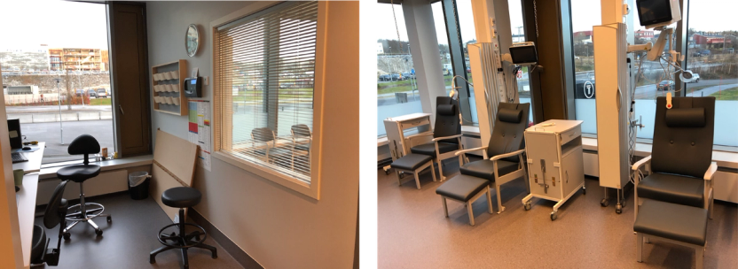 Evalueringer viser, at i poliklinikkområder hvor pasientene tilbys beroligende medikamenter er det nødvendig med tilgang til observasjonsplasser.