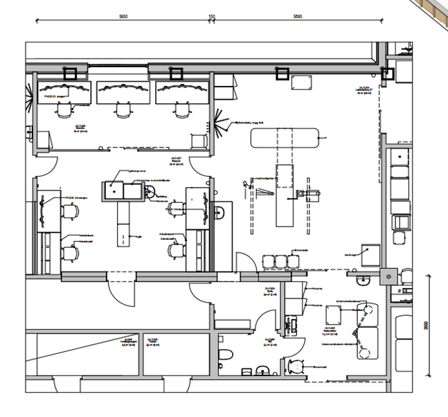 I figur 1 vises en skisse av et CT- rom med tilhørende manøverrom og arbeidsplass for lege.