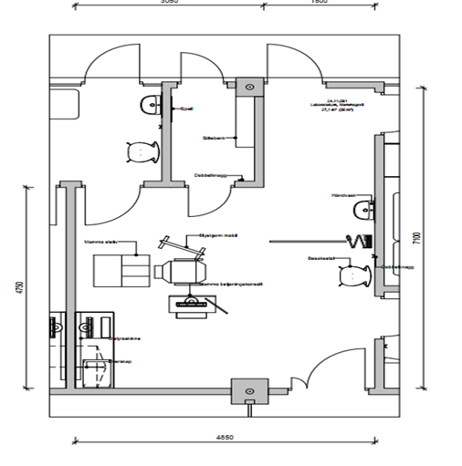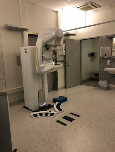 Figur 1 viser et eksempel på utforming av undersøkelsesrom for mammografiscreening.