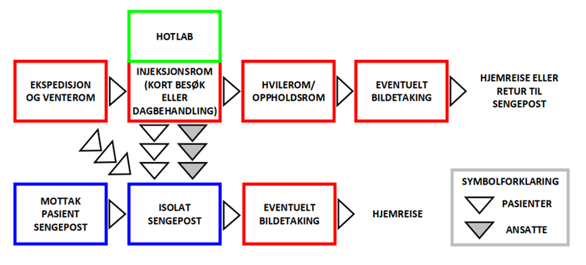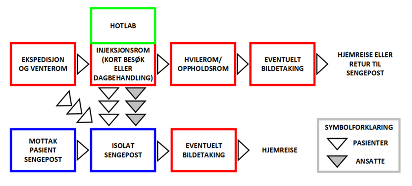 - Figur 3 viser en generisk skisse for pasientflyt for pasienter som får behandling med nuklider.