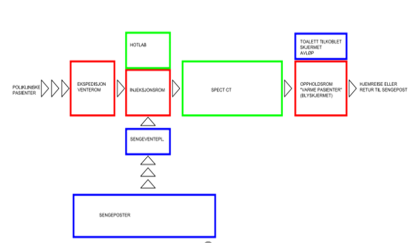 - Figur 1 viser en ordinær pasientflyt for pasienter som skal til en nukleærmedisinsk undersøkelse.