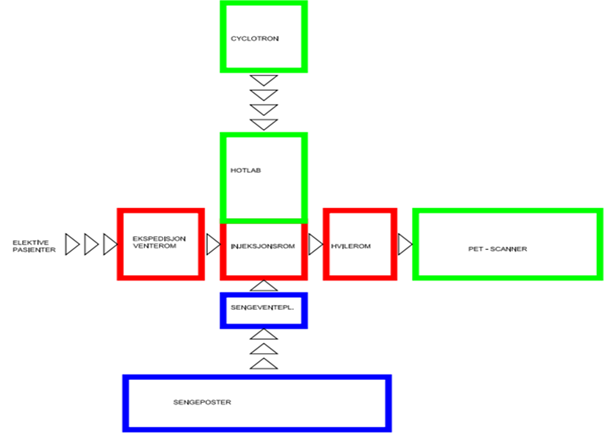 - Figur 2 viser er ordinær pasientflyt for pasienter som skal til en PET -undersøkelse.