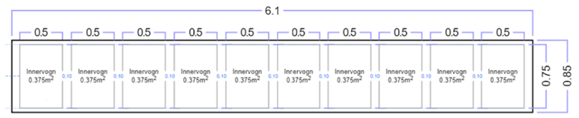 Alternativt kan cellen utformes i et hjørne eller med andre elementer, hvor dimensjonene på cellen vil bli noe annerledes.
